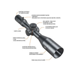 Développé en collaboration avec G.A. Précision, le tout nouveau réticule G4P vous offre une précision et une rapidité de correction encore jamais égalée. La partie supérieure épurée vous permet une meilleure lecture de la zone de tir. Même à très fort grossissement, le réticule reste fin évitant ainsi de masquer votre cible. La zone de contre visée reçoit astucieusement une série de points flottants, améliorés eux aussi grâce aux numérotages latéraux. Ce réticule G4P tient donc toutes ses promesses grâce à une lecture aisée de la zone et des conditions de tir, et des solutions de correction rapides.