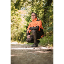 Veste de traque, légère et souple, garantissant une grande liberté de mouvement, fabriquée en tissu anti-ronce, ultra-résistant, Cordura tissage croisé. Membrane P.U respirante et imperméable.