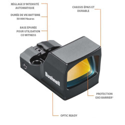 Pour la toute première fois sur un point rouge, Bushnell est venu appliquer son traitement breveté EXO BARRIER® révolutionnaire sur la lentille.