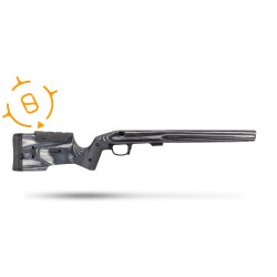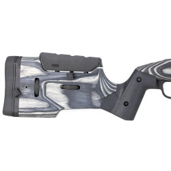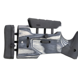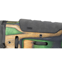 Le MDT Timbr Frontier a été développé pour offrir l'apparence et la sensation d'un stock traditionnel tout en incorporant la précision et la répétabilité de la literie V-Block moderne à partir d'un châssis. La crosse et l'avant sont en stratifié de bois dur de bouleau donnant à chaque crosse un grain de bois unique et une sensation chaleureuse. Ils sont ensuite recouverts d'un vernis de haute qualité et fixés au micro-châssis en aluminium et au fond métallique.