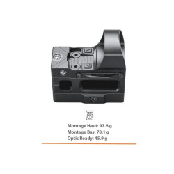 Le First Strike 2.0 est livrée avec un support qui fonctionne sur les rails Weaver et Picatinny, et se monte à la fois haut et bas pour fonctionner sur tout ce sur quoi vous le montez.