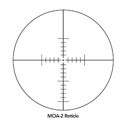 Le réticule MOA-2 a été conçu en 2011 et est devenu le réticule le plus populaire de la gamme Sightron. Le réticule peut être utilisé pour le tir sur cible à courte et longue portée. Le réticule comporte un réticule en croix fin avec un point lumineux au centre ouvert et des marques de hachage le long des 4 quadrants du réticule par incréments de 2 MOA.