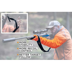 Lors du tir et du jeu, la bretelle de fusil Sauenhammer permet d'obtenir un réticule plus silencieux grâce à une plus grande stabilité.