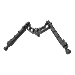 Il s'agit de l'un de nos modèles de bipied les plus robustes. Le centre large et abaissé permet au fusil de s'asseoir entre les pieds, ce qui favorise la précision et aide à réduire le mouvement de recul. Les pattes de verrouillage du bras sont plus grandes pour résister au fort recul d'un 50 BMG. Ce bipied a la capacité de s'incliner et dispose d'un levier de lancer très robuste. Le levier vous permet de régler la tension et d'améliorer la capacité de verrouiller le mouvement d'inclinaison en place. Il est également réglable afin de pouvoir être repositionné pour le ranger ou pour régler la tension une fois que vous avez atteint un arrêt. Les pieds peuvent être étendus en neuf options de hauteur différentes et peuvent être positionnés en position de rangement vers l'avant ou à 90° vers le bas. Son moyeu central large offre plus de stabilité, de résistance et de soutien.