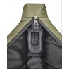 L'intérieur comprend un système MOLLE (40 cm de long avec 10 passants) pour fixer le fusil par deux sangles velcro et une zone renforcée pour la bouche du canon.